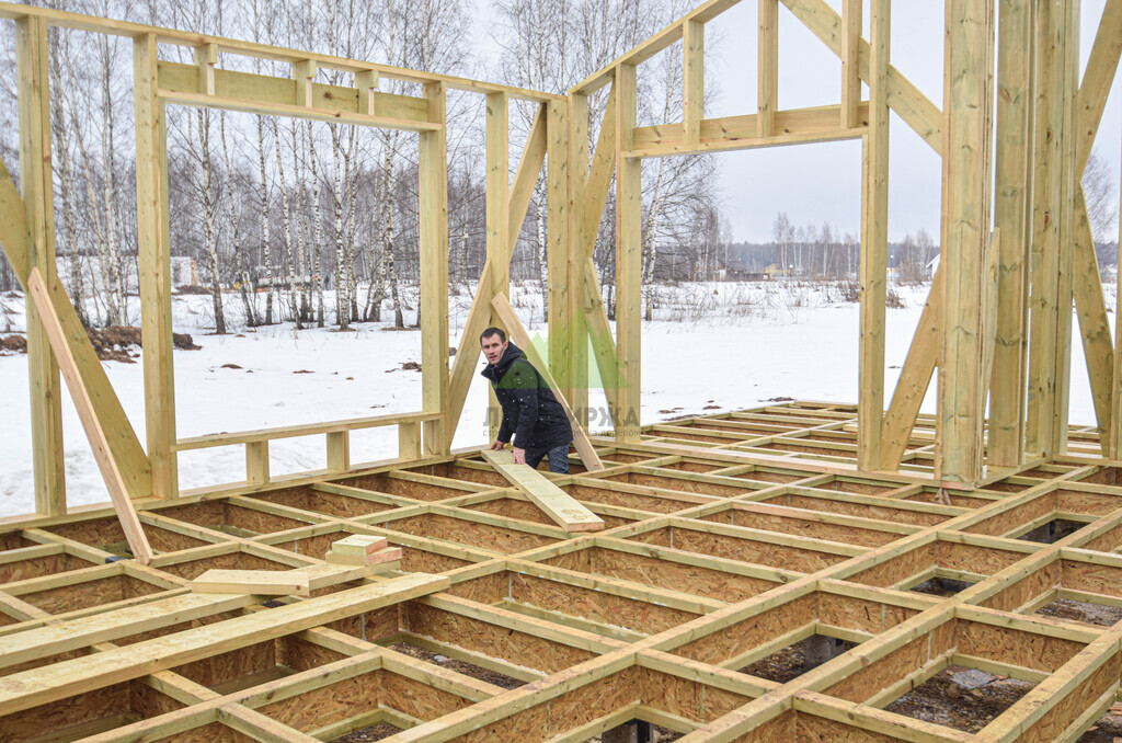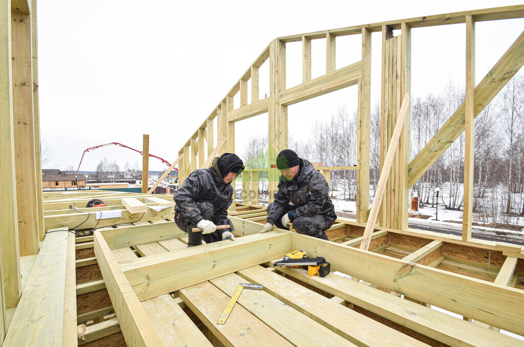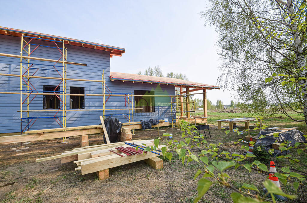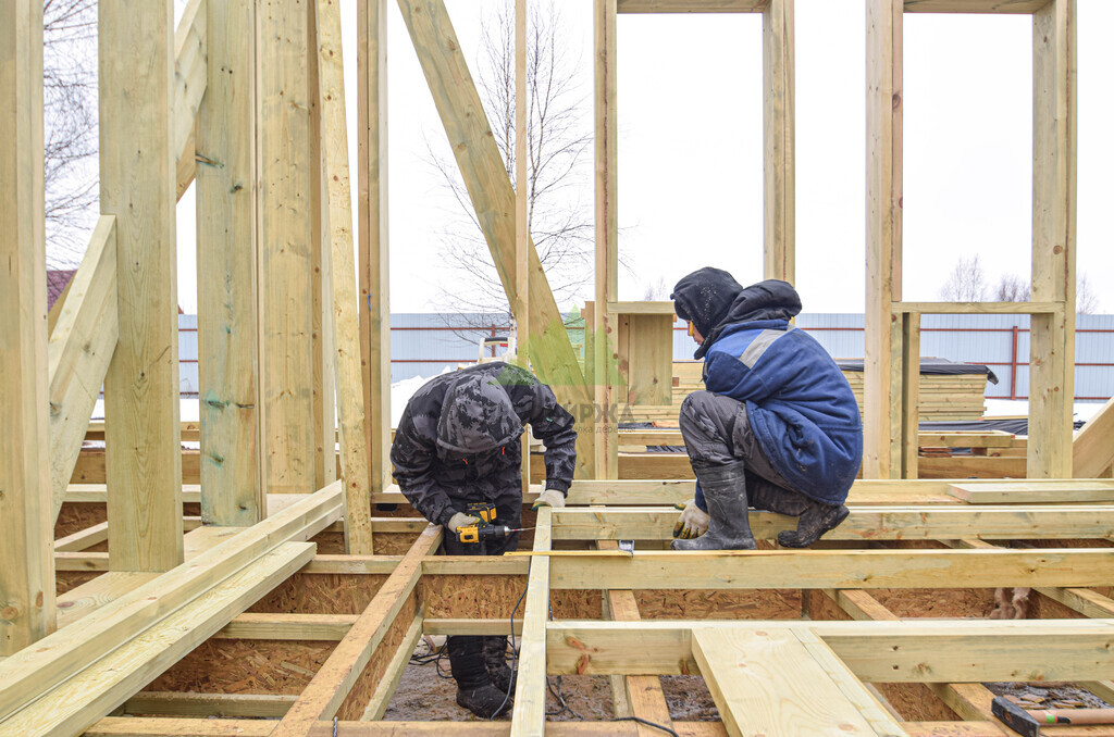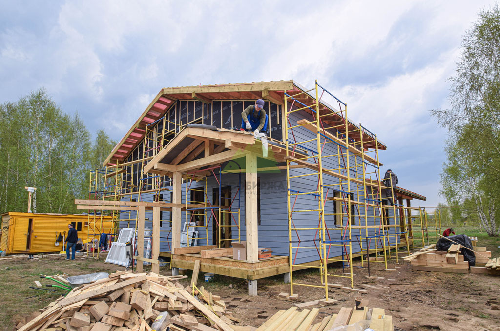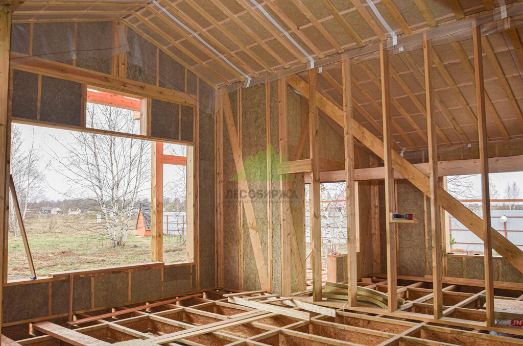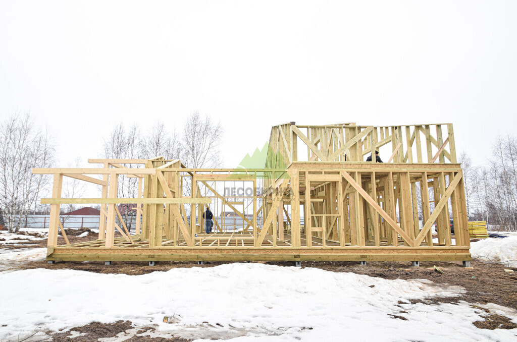 Сердцем любого каркасного дома является его силовой каркас. Для этого проекта были использованы тщательно отобранные пиломатериалы камерной сушки из хвойных пород дерева, обработанные современными антисептическими и огнебиозащитными составами на производственной базе Лесобиржи-Спб. Это гарантирует долговечность конструкции и безопасность эксплуатации. Сборка каркаса осуществлялась по заранее разработанным чертежам с ювелирной точностью. Каждый элемент – от обвязочного бруса до стропильной системы – был установлен с соблюдением всех норм СНиП. Были сформированы стены, перекрытия и крыша, создавая прочную и надежную коробку дома. Контроль качества производился на каждом этапе монтажа, что исключило любые отклонения от проекта и обеспечило идеальную геометрию здания.