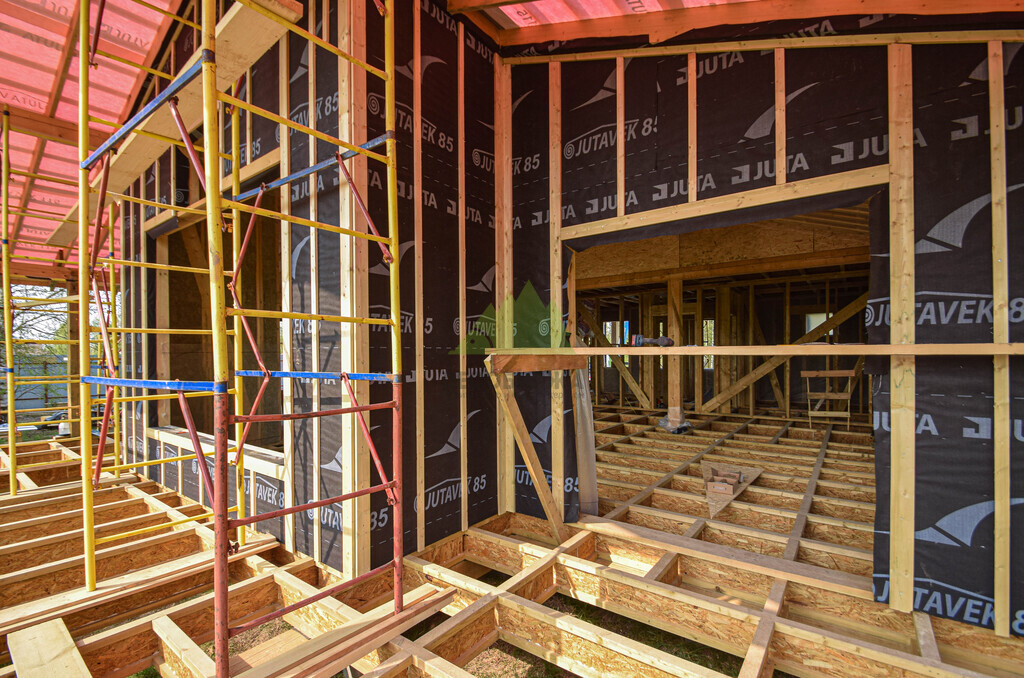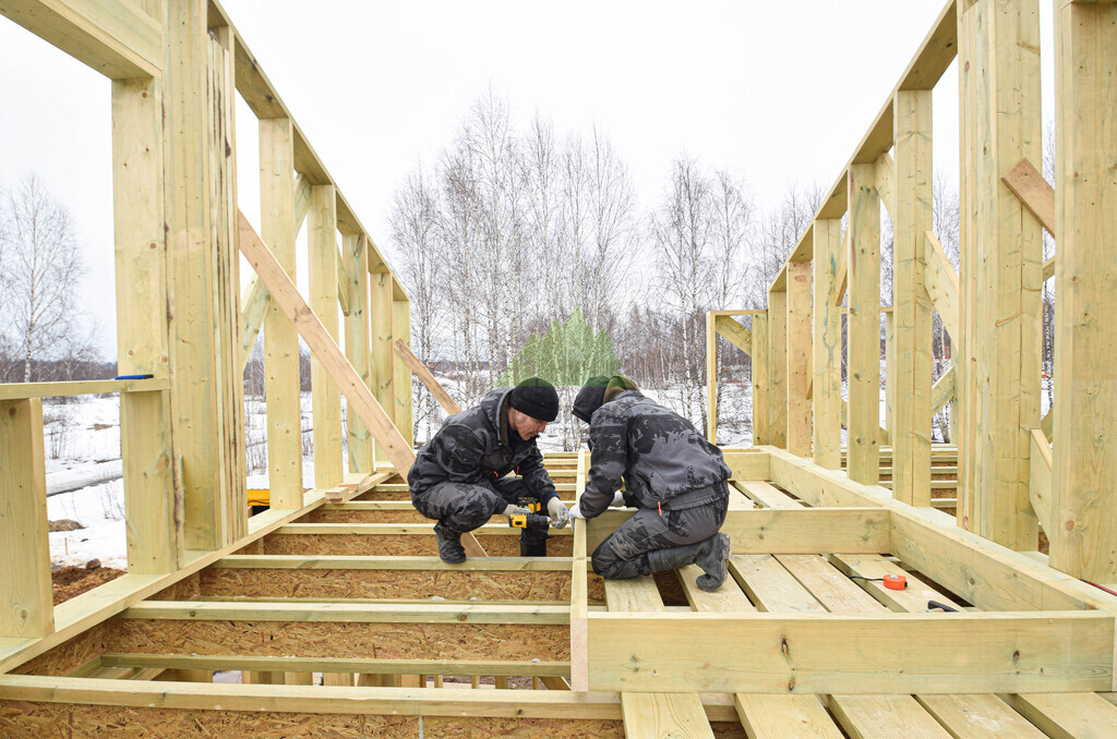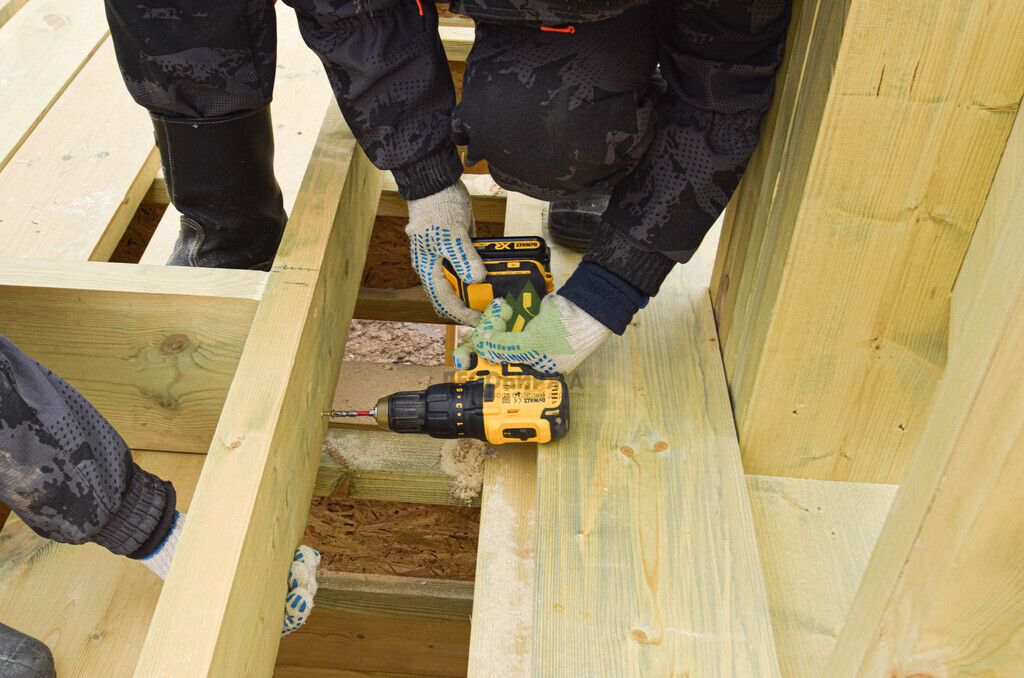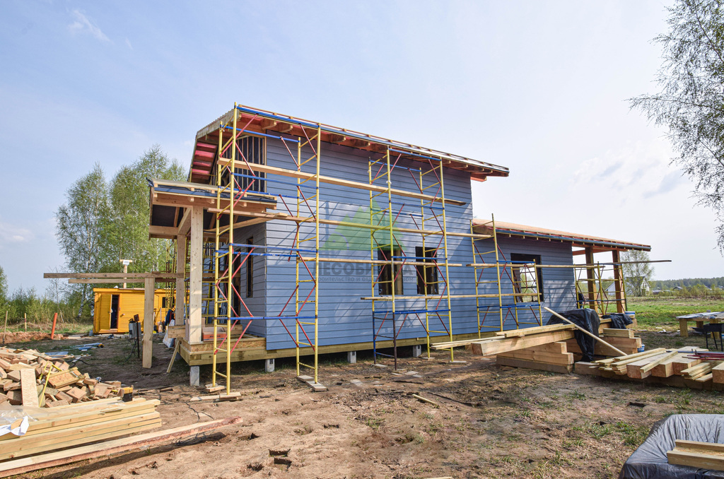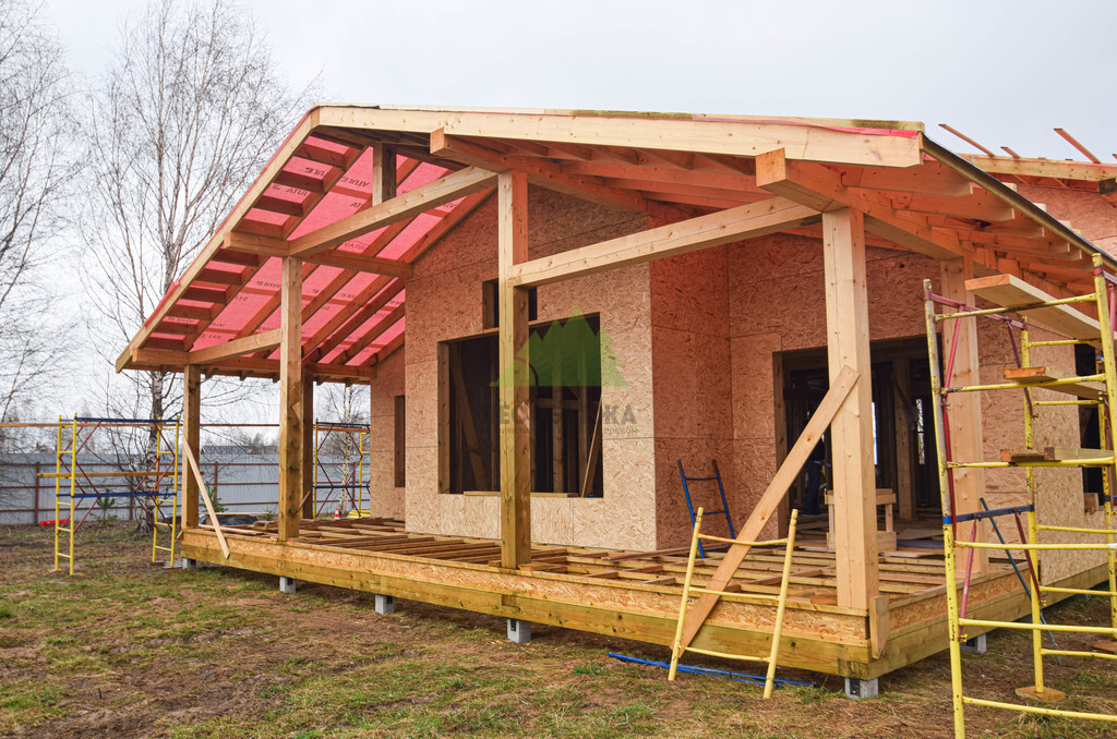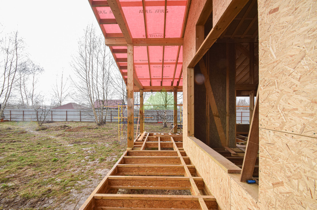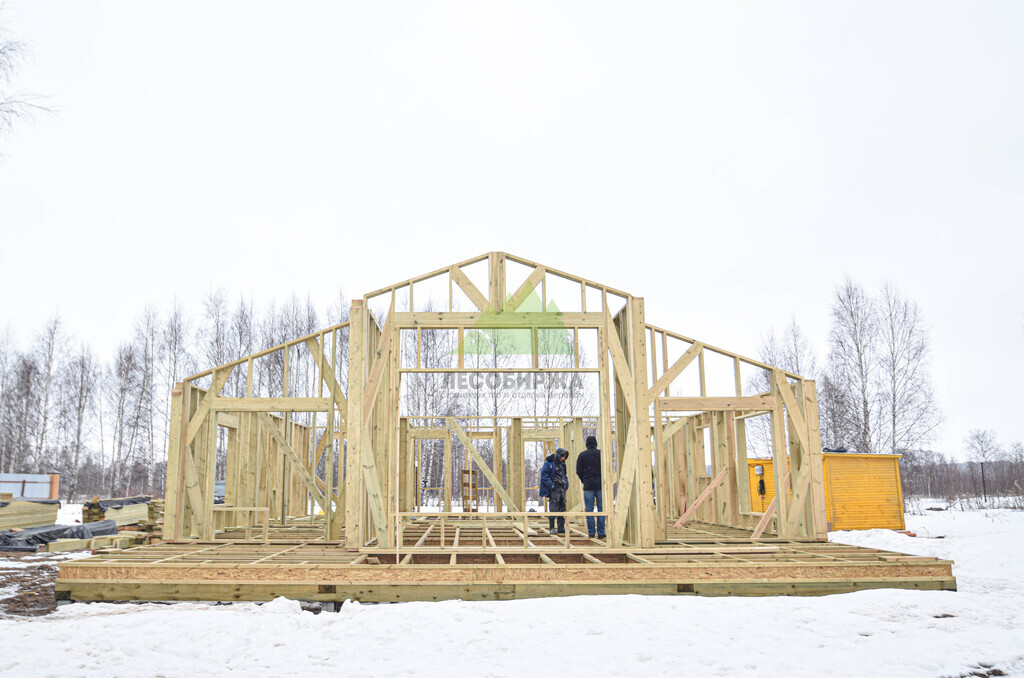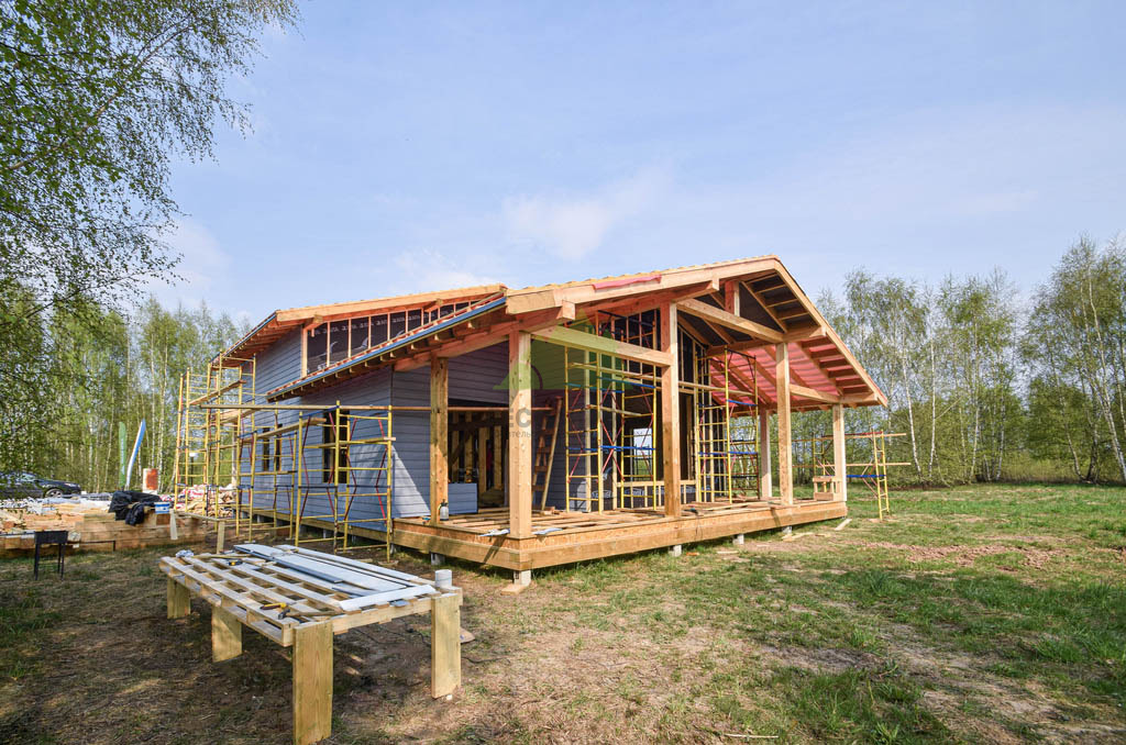Сердцем любого каркасного дома является его силовой каркас. Для этого проекта были использованы тщательно отобранные пиломатериалы камерной сушки из хвойных пород дерева, обработанные современными антисептическими и огнебиозащитными составами на производственной базе Лесобиржи-Спб. Это гарантирует долговечность конструкции и безопасность эксплуатации. Сборка каркаса осуществлялась по заранее разработанным чертежам с ювелирной точностью. Каждый элемент – от обвязочного бруса до стропильной системы – был установлен с соблюдением всех норм СНиП. Были сформированы стены, перекрытия и крыша, создавая прочную и надежную коробку дома. Контроль качества производился на каждом этапе монтажа, что исключило любые отклонения от проекта и обеспечило идеальную геометрию здания.
