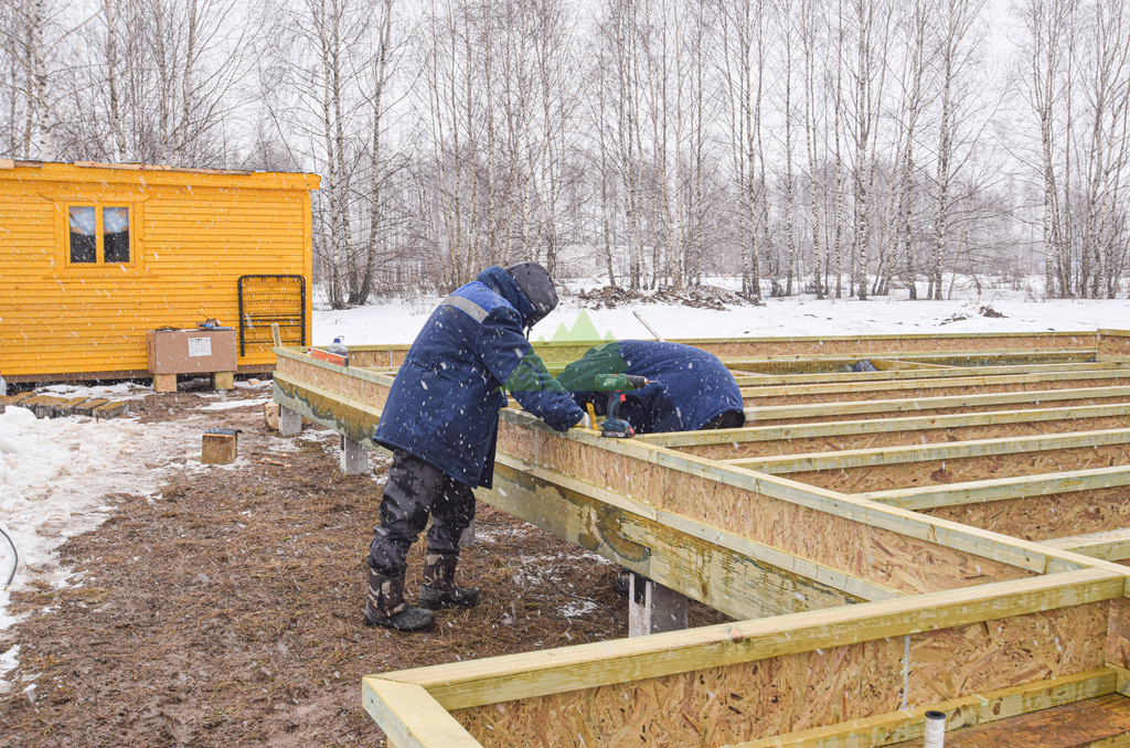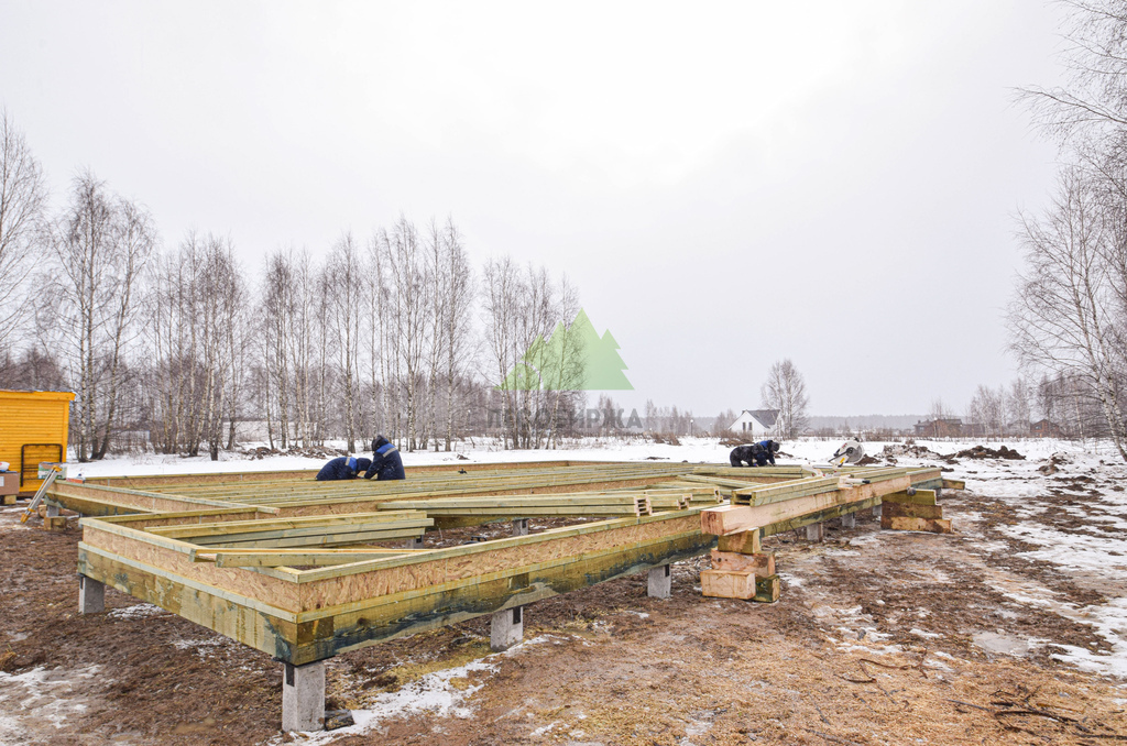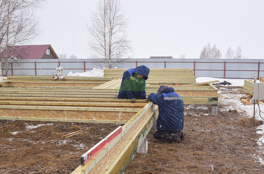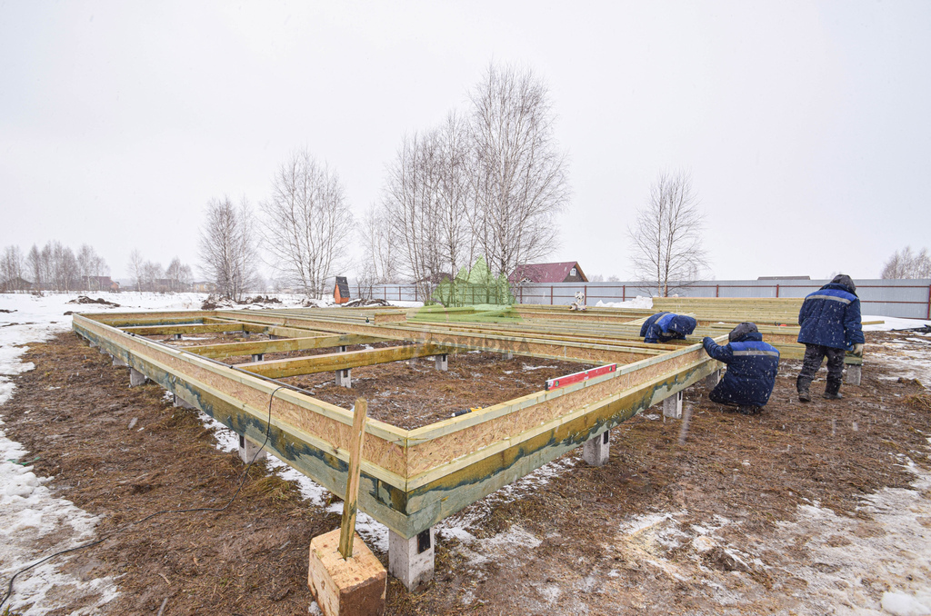 Следующим шагом стало устройство надежного и долговечного фундамента. Учитывая особенности грунтов в Ленинградской области, выбор пал на свайно-винтовой фундамент. Этот тип фундамента зарекомендовал себя как оптимальное решение для каркасного строительства: он не только экономичен и быстр в монтаже, но и крайне устойчив к пучению грунтов, что критически важно в нашем регионе. Наши бригады провели геологические изыскания, точно рассчитали количество и глубину заложения свай, а затем профессионально их установили с соблюдением всех технологических нормативов. Каждая свая была забетонирована и усилена ростверком, обеспечивая идеальную горизонтальную основу для будущего дома.