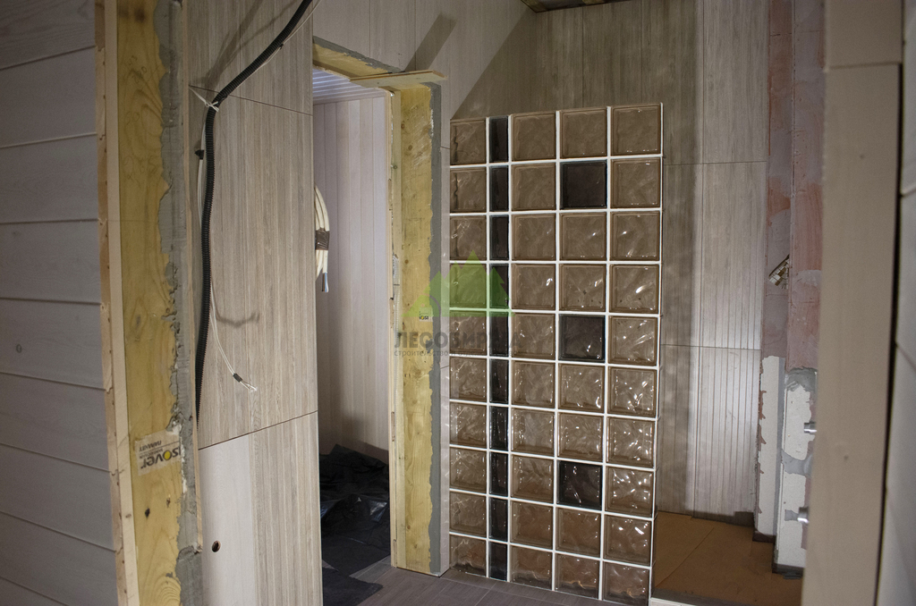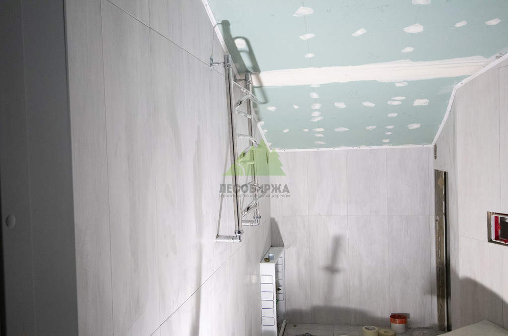 Внутренняя отделка – это создание атмосферы уюта и комфорта. После тщательной установки пароизоляционного контура и укладки базальтового утеплителя в стенах и перекрытиях, наши мастера приступили к чистовым работам. В зависимости от функционального назначения помещений, были использованы различные материалы. Стены в жилых комнатах обшиты имитацией бруса с финишной покраской, что создало ощущение тепла и натуральности. В санузлах и технических помещениях применялась влагостойкая гипсокартонная плита с последующей укладкой керамической плитки. Полы во всем доме были выполнены из шпунтованной доски, а затем покрыты высокопрочным лаком, сохраняющим текстуру дерева. Потолки были отделаны вагонкой, создавая единое стилистическое решение. Все работы по отделке выполнялись с высочайшей точностью и вниманием к деталям, чтобы каждый уголок дома радовал глаз клиента.