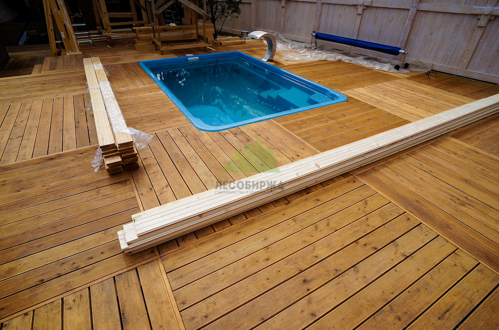Террасная доска «вельвет» для зоны у бассейна: фото, цена, монтаж | ООО "ЛесоБиржа" -СПб . Санкт-Петербург
