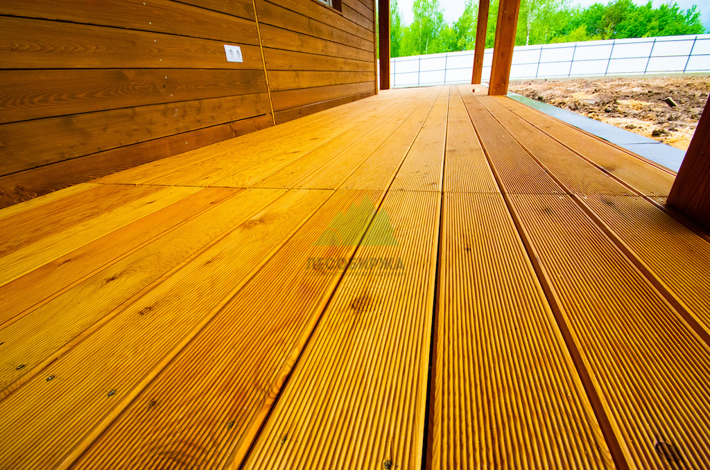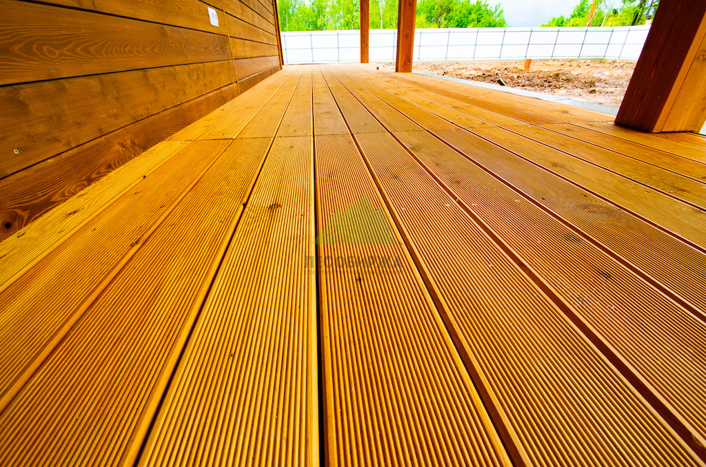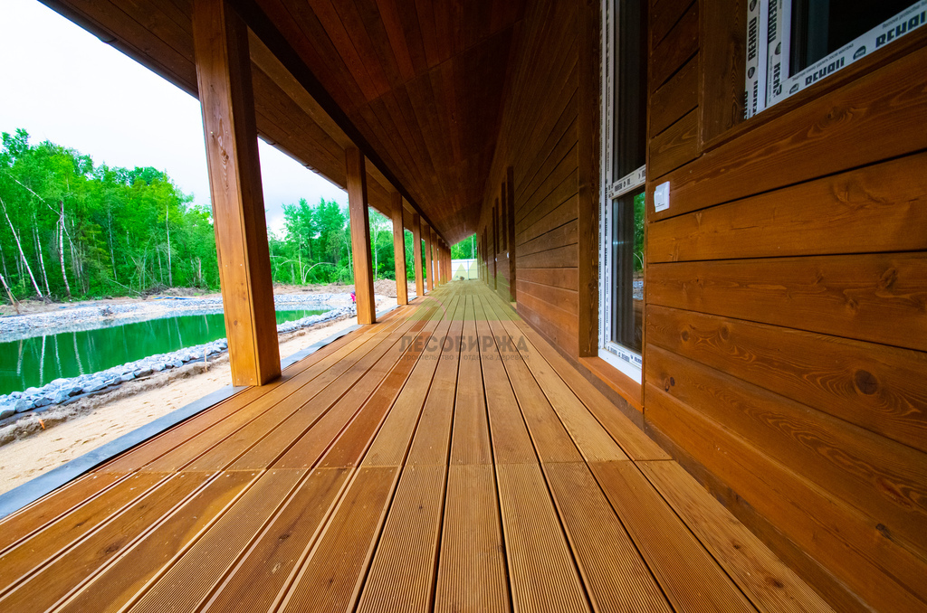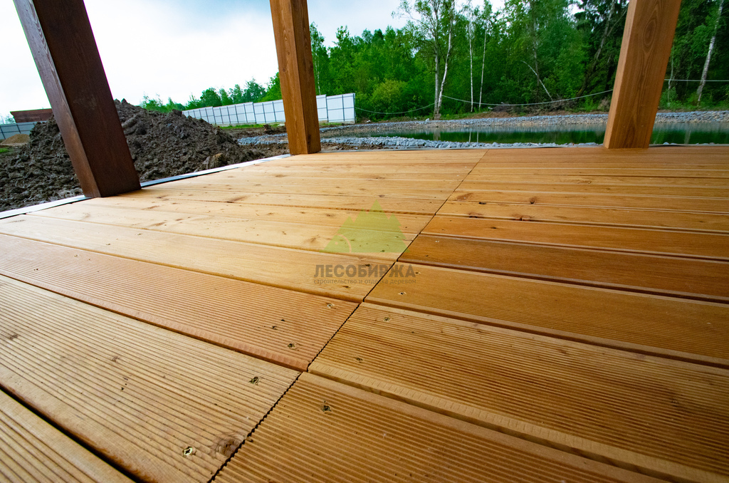 Безопасная терраса из лиственницы «Вельвет» для отеля у озера | ООО "ЛесоБиржа" - СПб. Санкт-Петербург