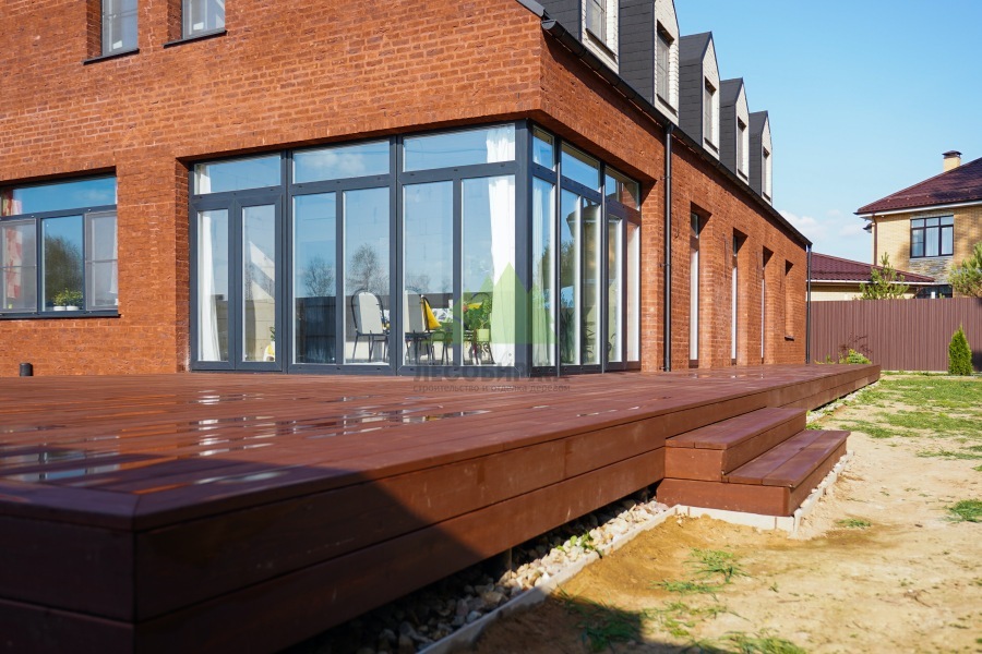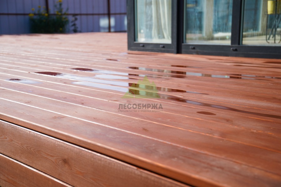 Террасная доска также прошла полный цикл обработки в нашем знаменитом малярном цехе. Система окрашивания включала грунт "Renner M 101", который подготавливает поверхность и обеспечивает максимальную адгезию, и финишное масло "Renner A 300". Результат превзошел все ожидания – поверхность террасы получилась не только чрезвычайно красивой, но и идеально защищенной, приятной на ощупь и устойчивой к истиранию. Это создало идеальное пространство для отдыха и семейных мероприятий, место, где каждый вечер превращается в теплый и уютный праздник. Клиент был в восторге от того, как преобразился его участок, получив гармоничное продолжение интерьера дома на открытом воздухе.
