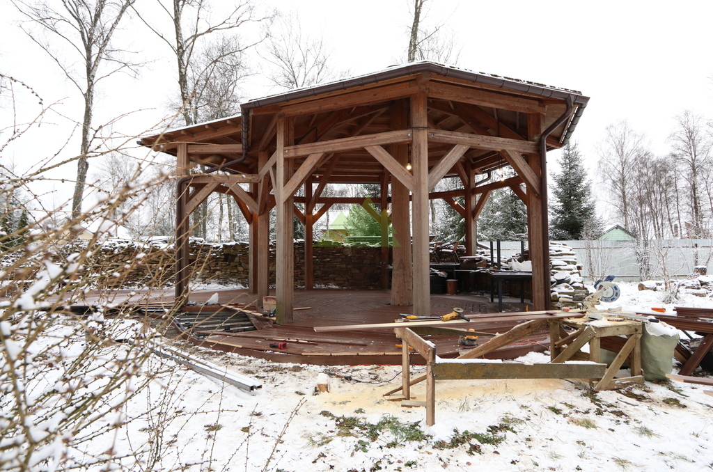 Завершающим этапом стала финальная проверка и доводка. Были устранены мелкие неровности, проверена жёсткость конструкции, качество крепления и внешний вид настила. Терраса была полностью готова к эксплуатации: прочная, ровная, аккуратная и рассчитанная на длительную службу без необходимости доработок или переделок в ближайшие годы.