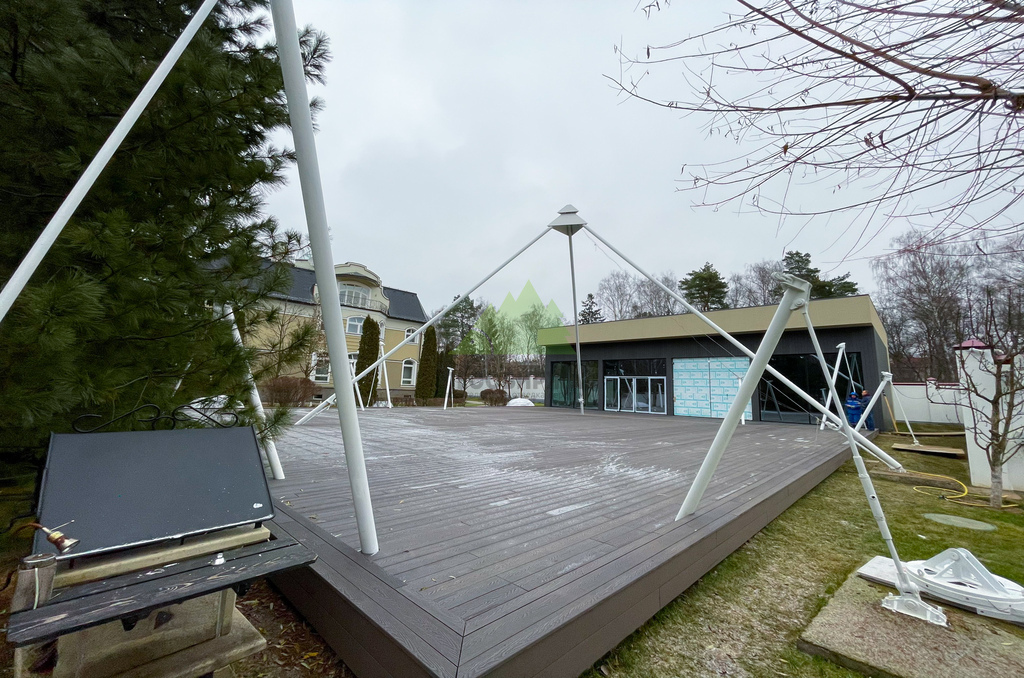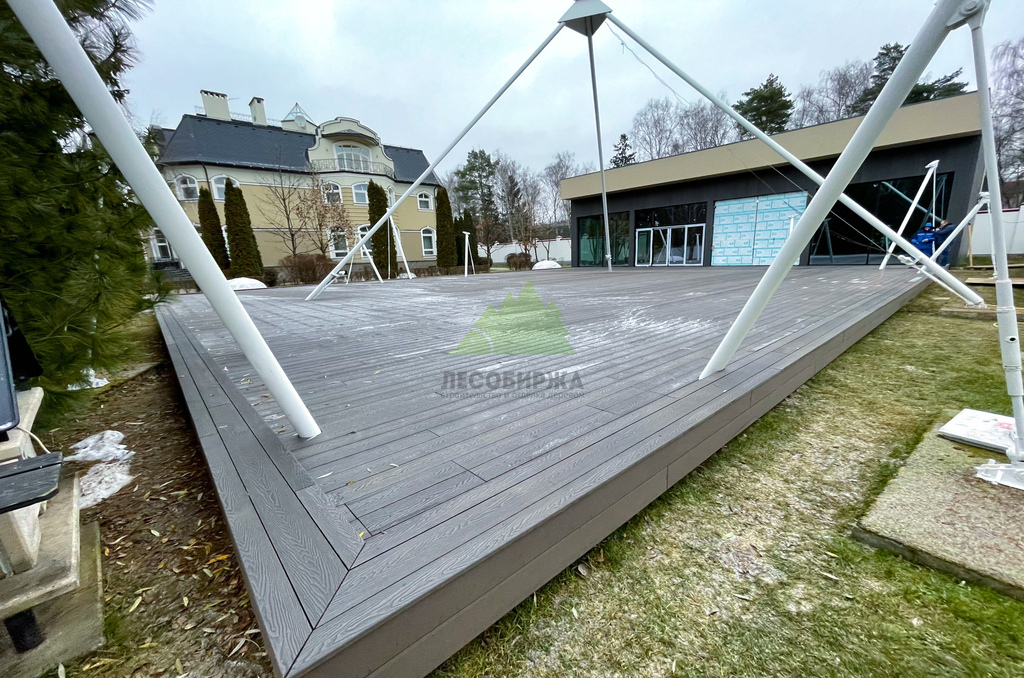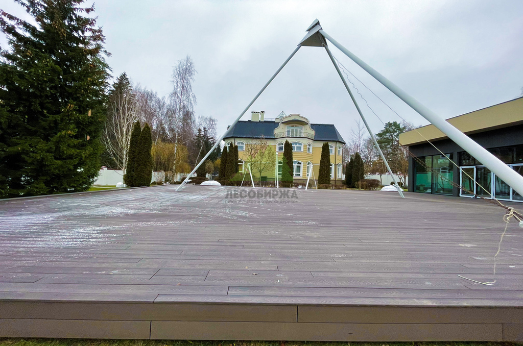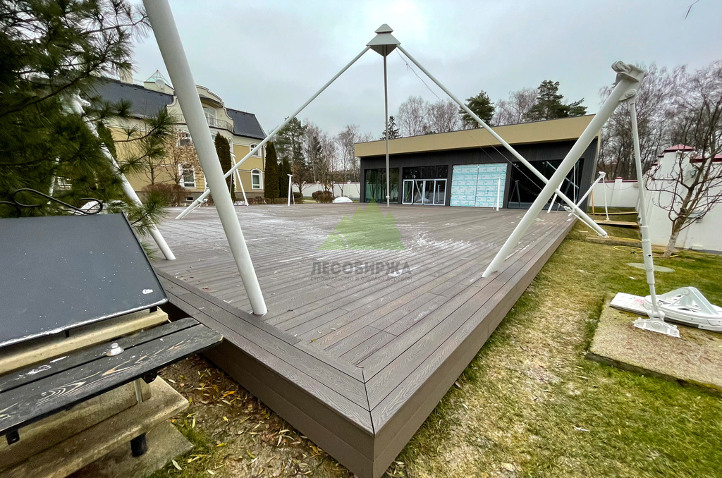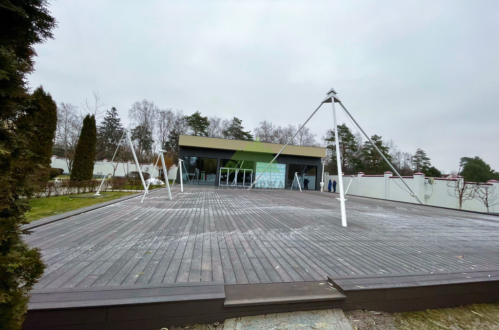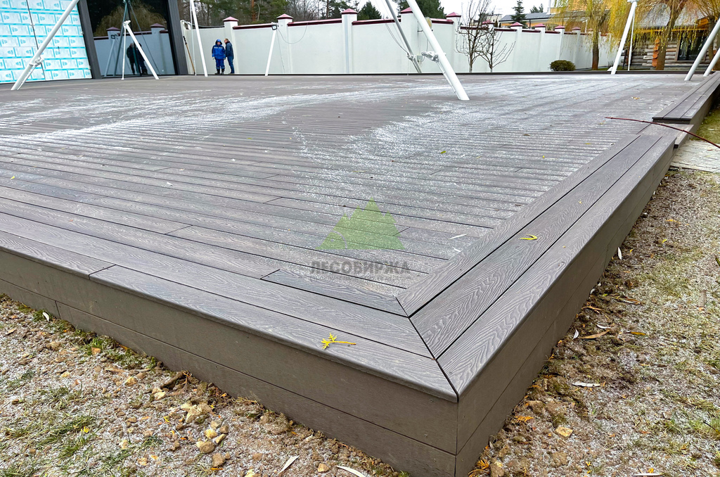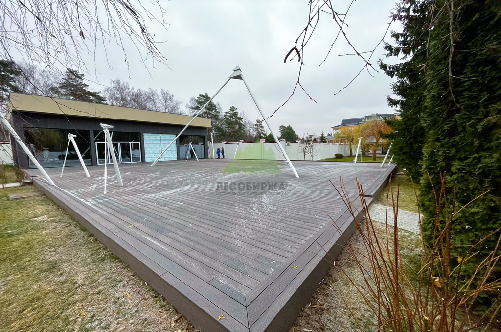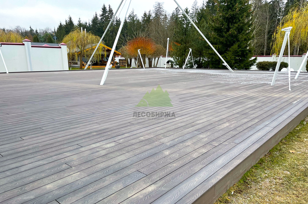 Полнотелый ДПК отличается повышенной плотностью и однородностью структуры, что делает его устойчивым к значительным весовым и механическим нагрузкам. Такая доска не истирается быстро даже при интенсивном использовании террасы, сохраняя свою эстетику на долгие годы. Отличительной особенностью ДПК является его стабильность геометрии: он не подвержен выгибанию, усыханию или растрескиванию, что часто является проблемой для натуральной древесины. Для этого проекта мы выбрали доску великолепного цвета "венге", который придал террасе изысканный и благородный вид, идеально гармонирующий с окружающей природой Лесных террас.