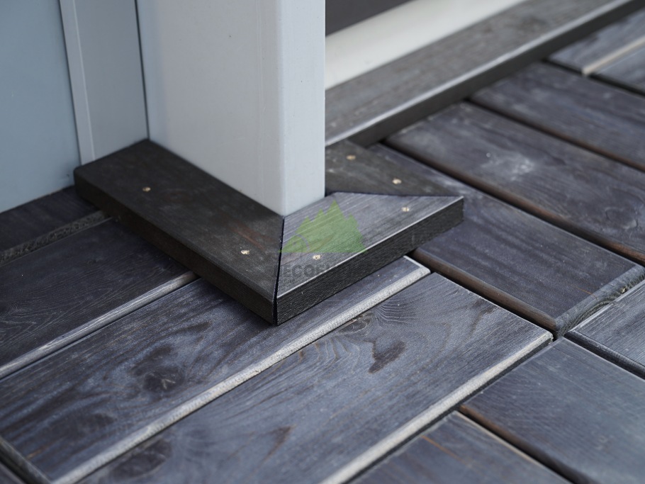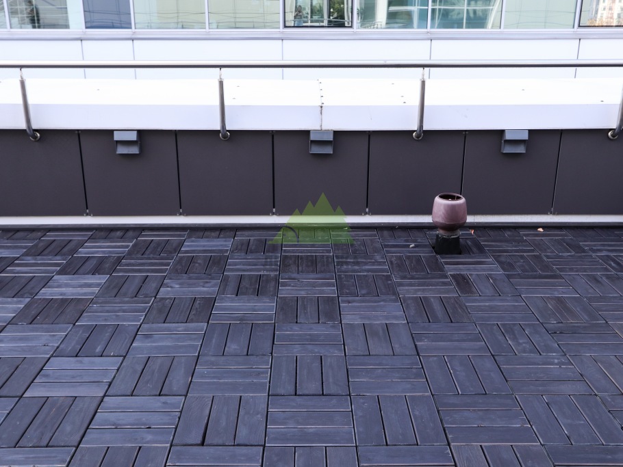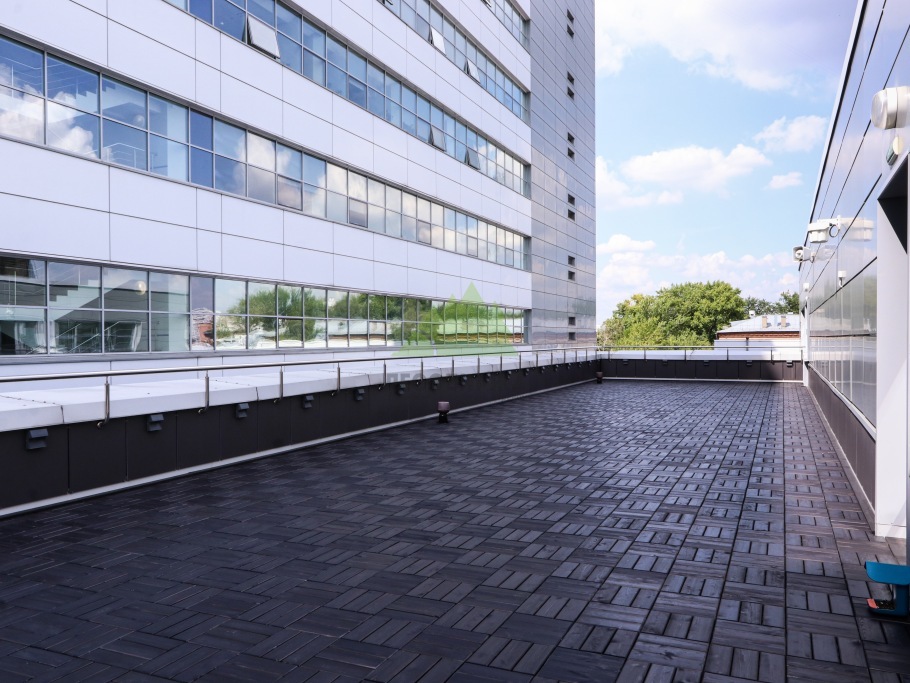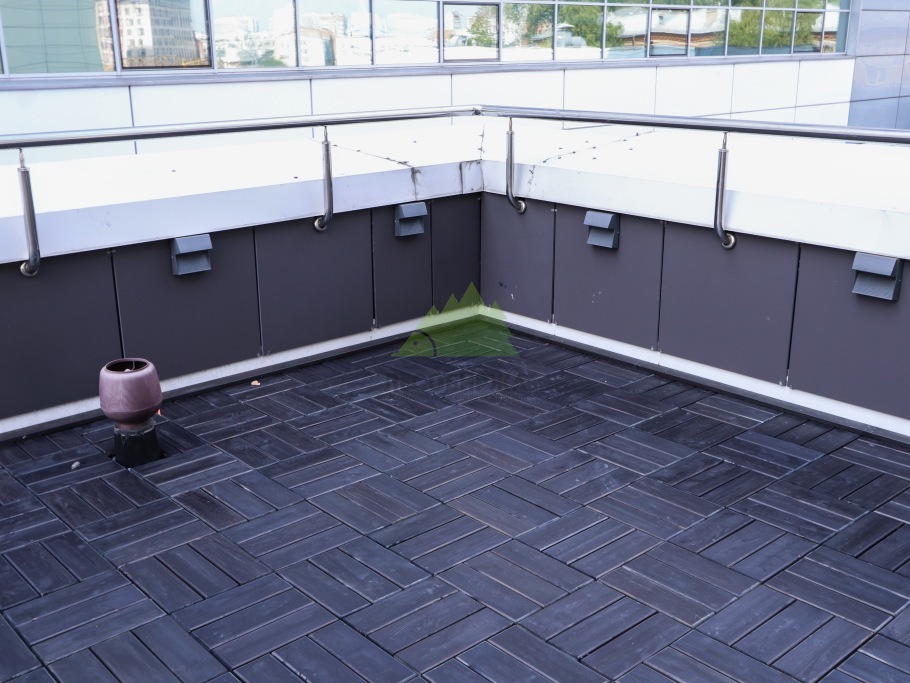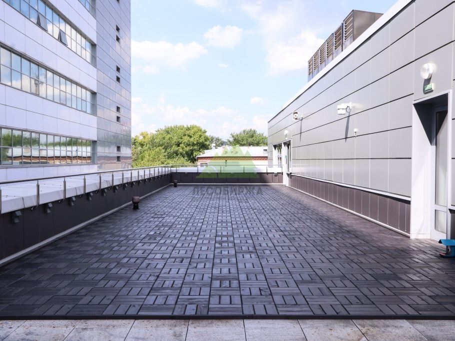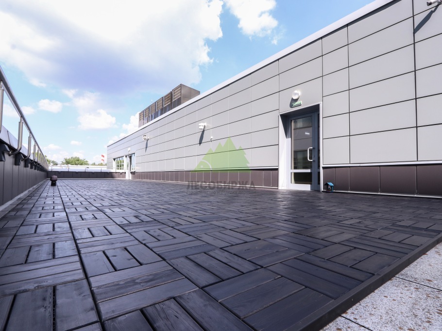 Монтаж модулей на эксплуатируемой кровле – это процесс, требующий точности и аккуратности. Наши мастера укладывали их непосредственно на подготовленную бетонную стяжку, обеспечивая идеальное прилегание и ровность поверхности. Важным элементом монтажа является система крепления "шип-паз", благодаря которой модули надежно соединяются между собой, образуя единое, прочное и стабильное покрытие. Эта система исключает смещение элементов и образование щелей, гарантируя долговечность и безопасность эксплуатации террасы. По периметру крыши, а также в зонах примыкания к парапету и участкам с керамогранитным покрытием, модули были дополнительно поджаты специальными планками из термированной сосны. Это решение не только придает завершенность и эстетичность всей конструкции, но и выполняет важную функциональную роль, надежно фиксируя крайние элементы и предотвращая их деформацию или смещение в процессе эксплуатации. Такой подход обеспечивает безупречный внешний вид и максимальную надежность покрытия.