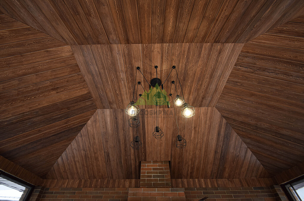 Обшить потолок вагонкой, покрашенной так, чтоб было гармонично с кирпичом и печью. Мангальная зона и потолок должны быть как-бы в гармонии друг с другом. А так же важно, чтоб при перепадах сухости и влажности в беседке, отделка не рассыхалась. Основные характеристики объекта: