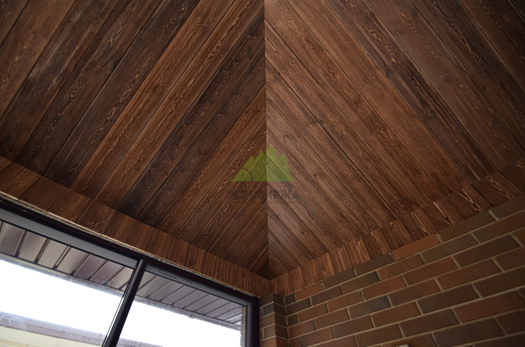 Технология «Зимняя сказка» в интерьере беседки: брашировка, двухцветная покраска, ангарская сосна — кейс ЛесоБиржи. Санкт-Петербург