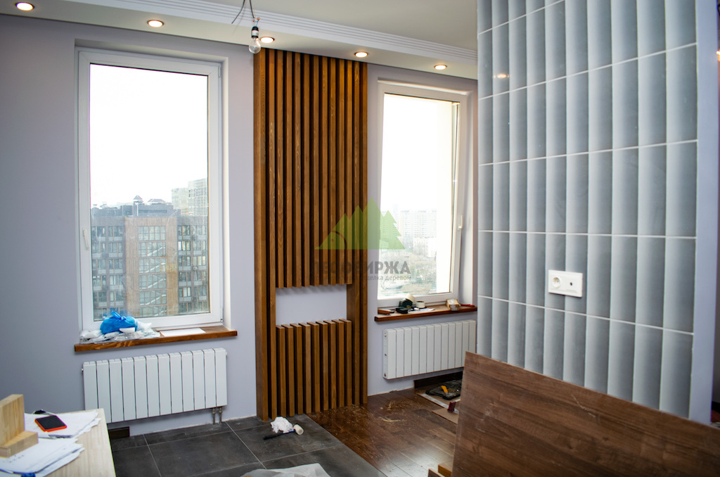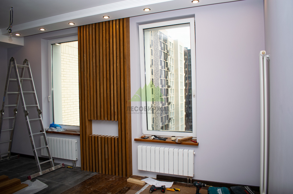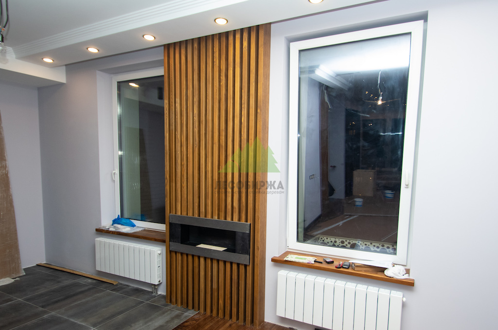 Монтаж перегородки и ниши для эко-камина в Усадьбах в Стрешево стал наглядным подтверждением нашего профессионализма. Наши столяры, работая в тандеме, посвятили этому проекту почти 19 часов, демонстрируя высочайшую концентрацию и мастерство. Каждая рейка была выверена по уровню с миллиметровой точностью, стыки подогнаны идеально, а вся конструкция обрела монолитный, но при этом воздушный вид. Особое внимание было уделено интеграции ниши для камина, где требовалась максимальная точность для безопасной и эстетичной установки оборудования. Результат превзошел все ожидания заказчика: гостиная преобразилась, обретя четкое, но ненавязчивое зонирование и современный акцент в виде камина, обрамленного натуральным деревом.