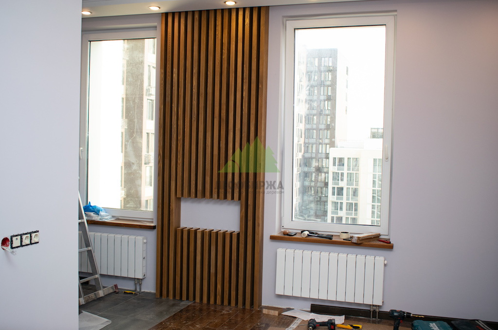 Задача клиента была многогранной: требовалось не только элегантно зонировать гостиную с помощью реечных перегородок из лиственницы, но и интегрировать нишу для современного эко-камина, выполненную также из деревянных брусков. Это не просто монтаж готовых элементов, а создание индивидуального архитектурного акцента, требующего высочайшей квалификации, тщательного планирования и безукоризненного исполнения на каждом этапе. Именно такие проекты являются визитной карточкой наших специалистов, обладающих не только техническими навыками, но и тонким художественным вкусом.