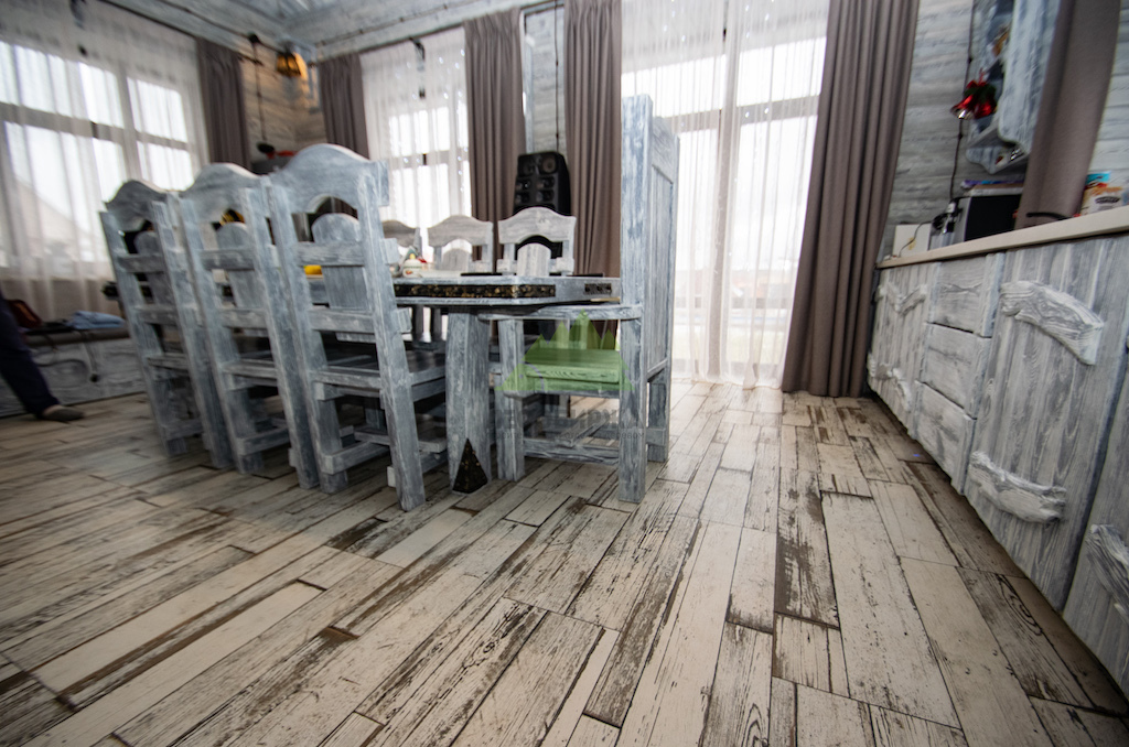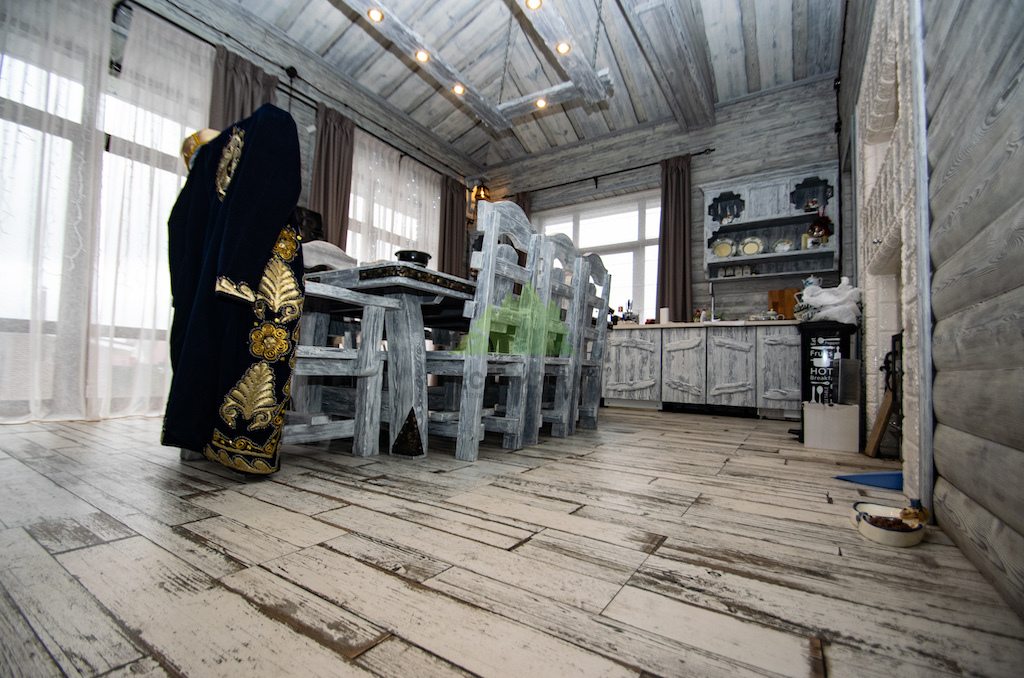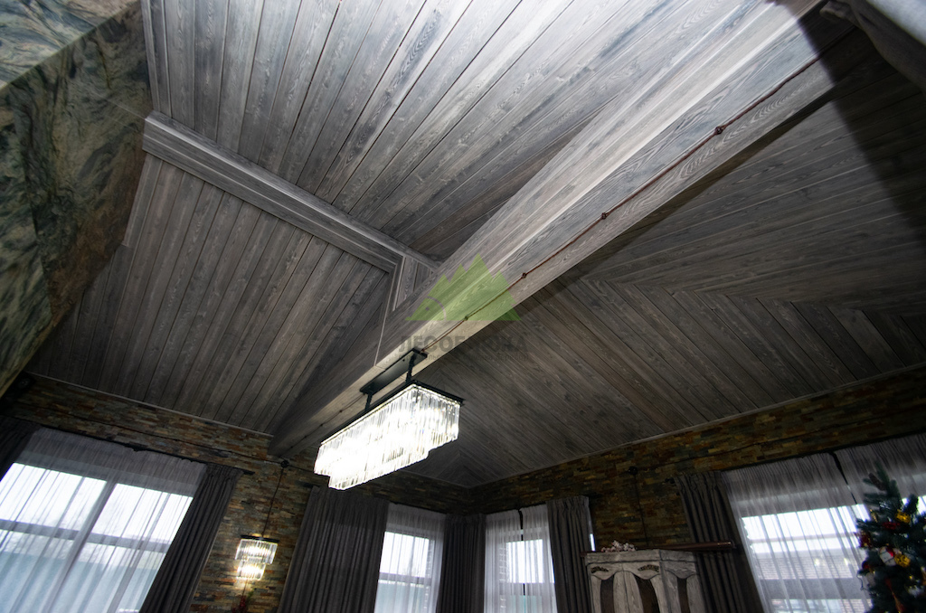 Выбор материалов для винтажного интерьера требует особой тщательности, ведь они должны не только соответствовать стилю, но и быть долговечными, экологичными. Мы остановили свой выбор на натуральном дереве, как на идеальном решении. Для отделки был использован высококачественный планкен из сосны сорта А. Чтобы придать ему ту самую "изюминку" и элегантность времени, наши мастера применили уникальную технологию патинирования и браширования, разработанную специалистами Лесобиржи-Спб и известную как "Зимняя Сказка".