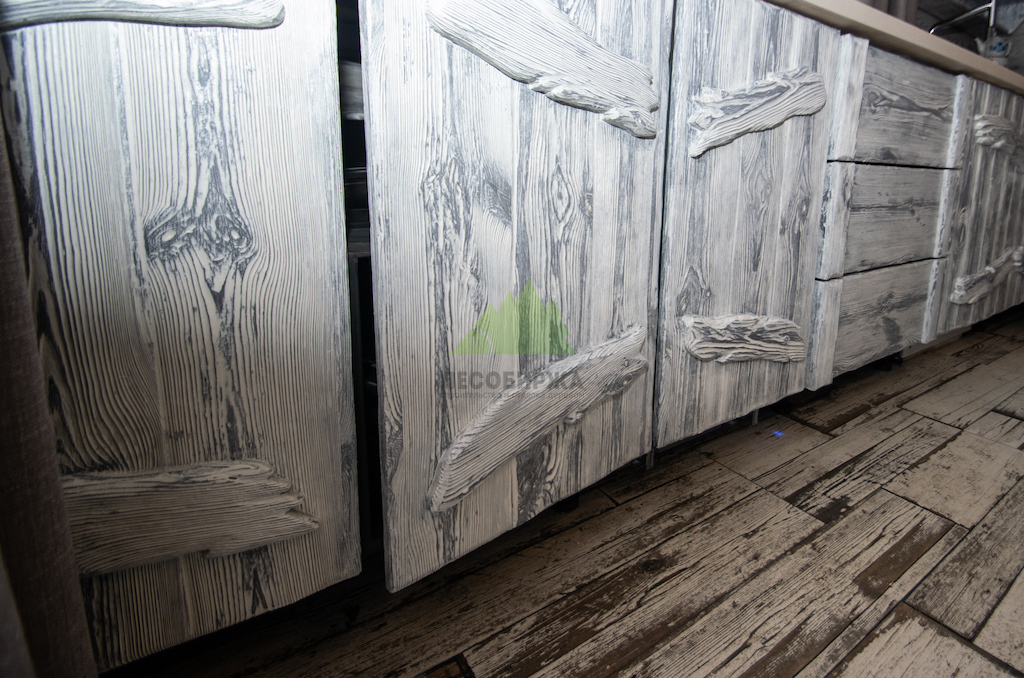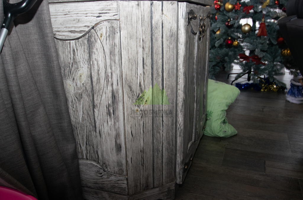 - После полного высыхания эмаль затирается до обнажения первичного слоя краски, который остался на твердых волокнах древесины, создавая эффект потертости и глубины цвета.