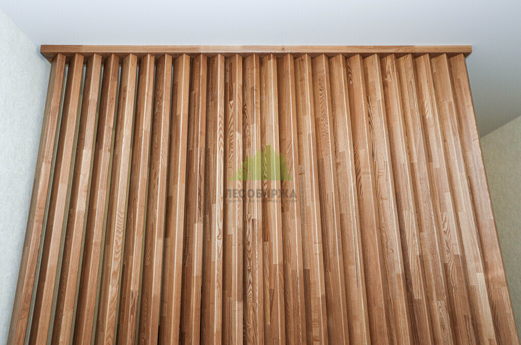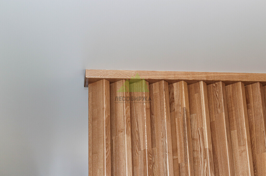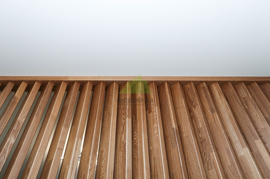 - Просты в обработке, предусматривают декорирование поверхности. Дерево легко поддается обработке, что позволяет дополнительно декорировать рейки, например, интегрировать подсветку или другие элементы.