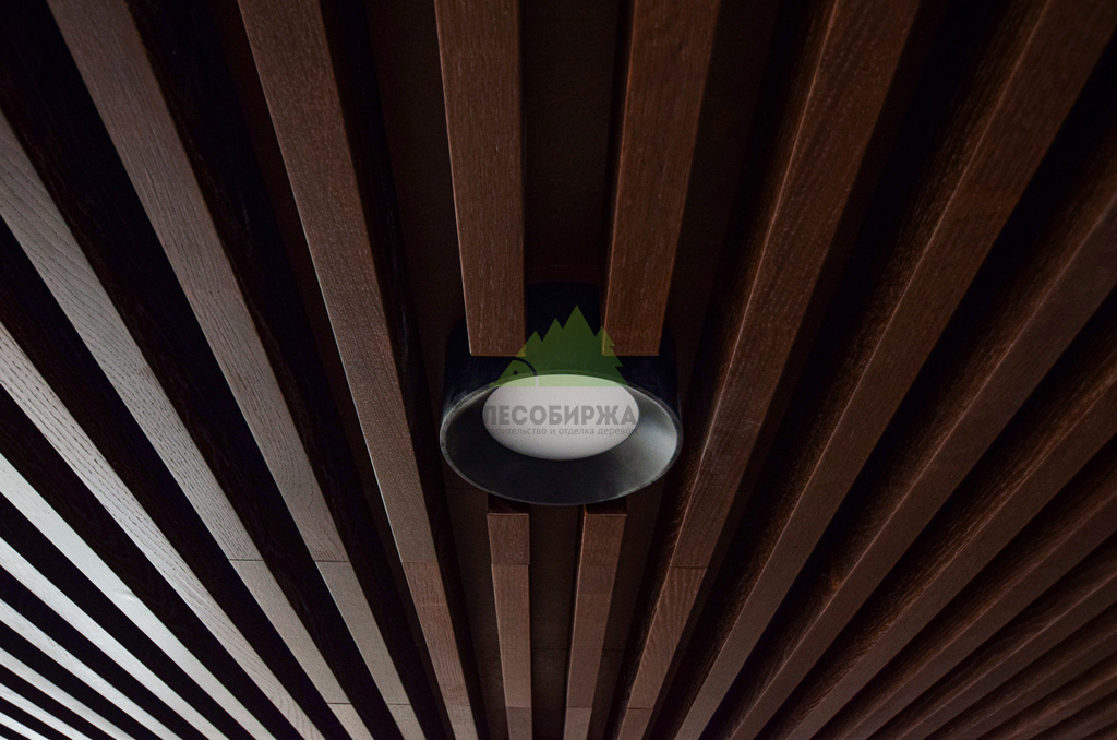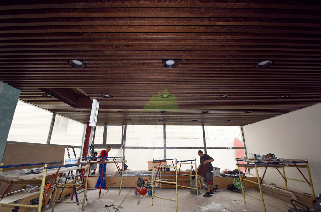 Монтаж баффелей на объекте – это тонкая работа, требующая высокой квалификации и внимания к деталям. Каждый элемент был установлен с соблюдением точного шага и горизонтального уровня, создавая эффект динамичной, но при этом гармоничной поверхности. Специалисты Лесобиржи-Спб обладают богатым опытом в работе с подобными конструкциями, что позволяет нам гарантировать безупречный результат даже при самых сложных дизайнерских решениях. Мы уделяли особое внимание сопряжению баффелей с элементами освещения и системами вентиляции, обеспечивая их бесшовную интеграцию в общий дизайн потолка. В итоге, потолок преобразился в настоящее произведение искусства, где каждая деталь подчеркивает продуманность интерьера и высокий статус компании-заказчика.