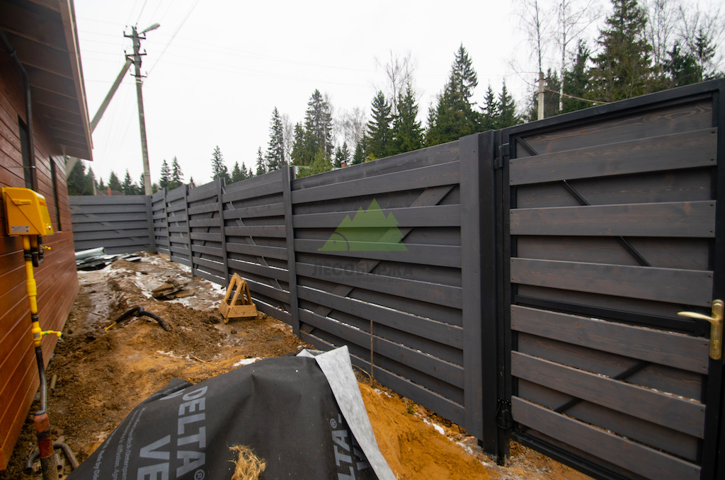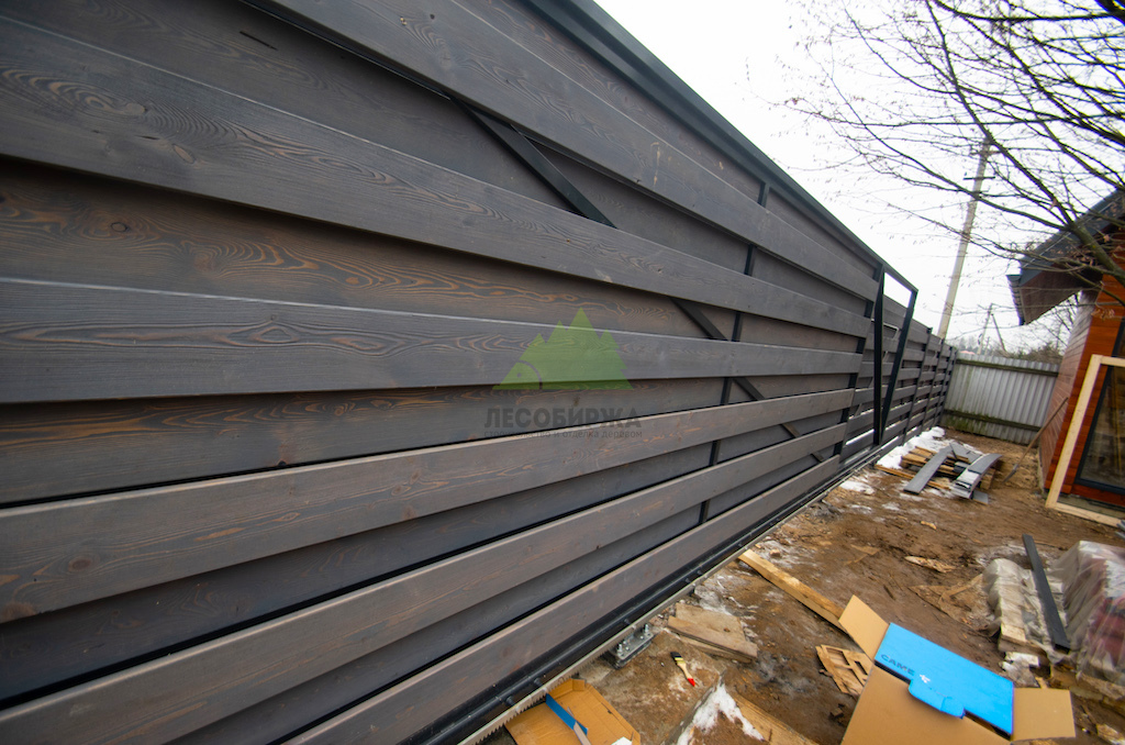 Ограждение из лиственницы с брашировкой и автоматикой: фото, цена, монтаж | ООО "ЛесоБиржа" - СПб. Санкт-Петербург