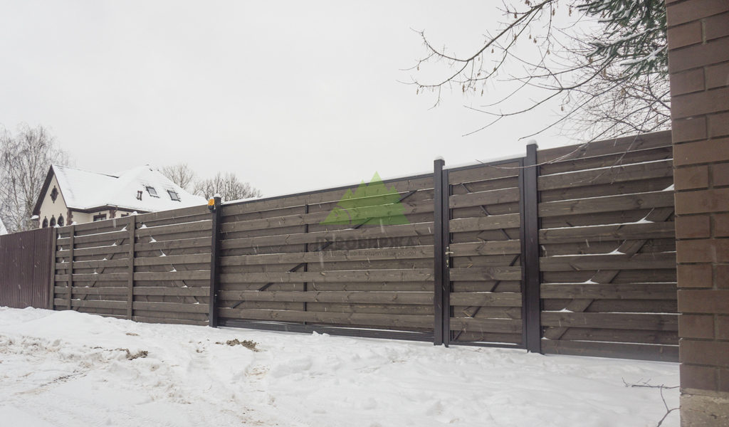 - Такой забор выглядит превосходно как со стороны улицы, так и со стороны дома, обеспечивая безупречный вид с любой точки участка.